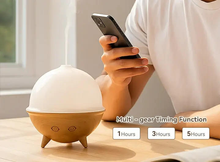 Multi – gear Timing Function It supports three – gear timing settings: 1 – hour, 3 – hour, and 5 – hour modes, as well as continuous atomization until water shortage. You can flexibly choose the appropriate aromatherapy duration according to different usage scenarios and needs, allowing the fragrance to accompany you in a more personalized way.