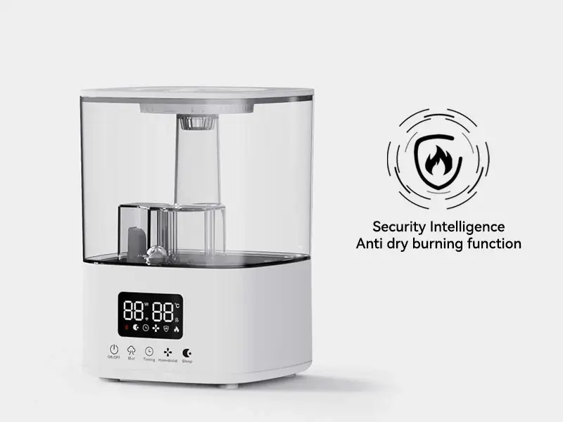 Sleep-Friendly Humidifier with Water Shortage Alert In sleep mode, the digital screen turns off while still functioning normally, ensuring comfortable sleep without light disturbance. Quietly emits a soothing cool mist, maintaining steady room humidity levels as you sleep. Automatically shuts off humidification function when water is low to prevent dry burning. |