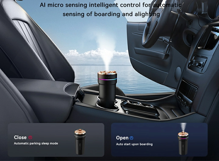 This humidifier features automatic operation synchronized with your vehicle. It powers on seamlessly as your car starts, working quietly to moisturize the cabin air. When the car is turned off, it automatically powers down and enters standby mode. No extra steps are needed – it effortlessly maintains optimal humidity levels inside your car at all times. |