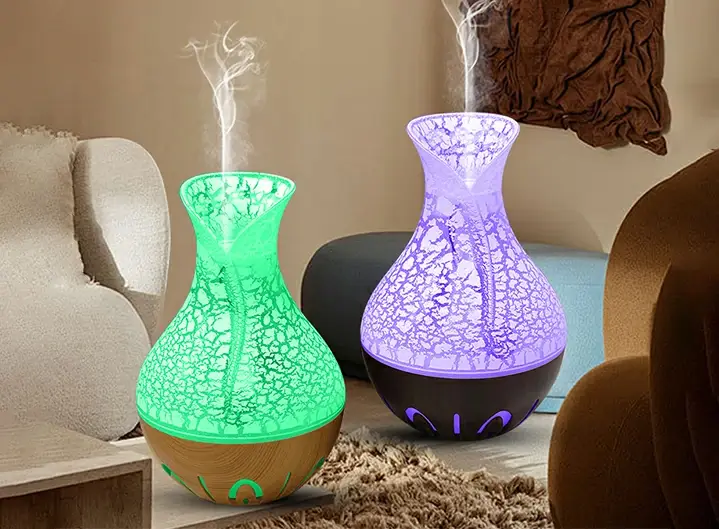 Shaped like a traditional vase, it combines crackle-glaze texture with delicate cutouts, in line with home style, imitating wood grain to enhance home texture, wood grain texture gives the product a warm and simple visual experience,Compared to plastic, it appears more high-end |