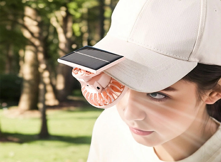 Multi-crystalline solar panel + lithium battery. Slide up for solar energy under sunlight, slide down for battery power. Ensures uninterrupted cooling and breaks power restrictions.