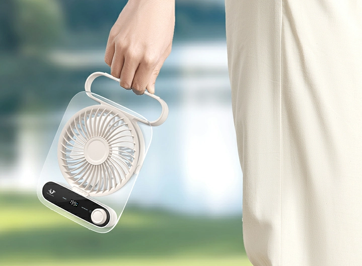 The bracket bends 180° freely, switching easily between desktop placement, wall-mounting, or hand-carrying. Adapts to various scenarios for wide-range air supply.