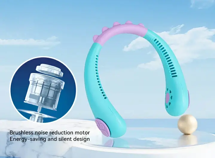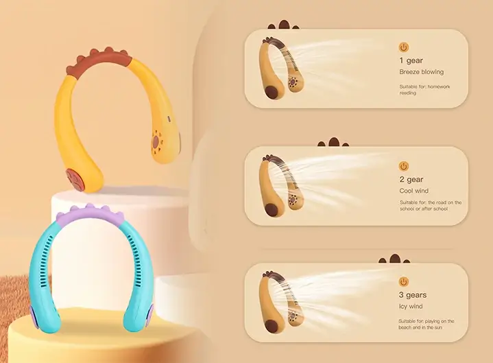 Cute Animal – Shaped Design for Kids Designed for kids, this hanging – neck fan has a cute dinosaur shape with bright colors. Hanging like a little dinosaur, it cools in summer and pleases kids, an ideal choice for parents.