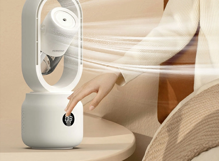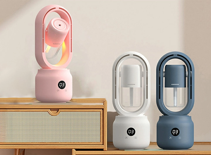 Humidification & Soothing Mood Lights Combines cooling mist function with elegant mood lighting to create a relaxing atmosphere. This dual system breaks the single-function limitation of ordinary fans, providing not just coolness but also visual comfort and air hydration.