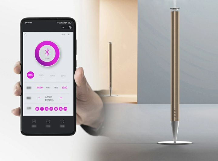 Bluetooth Smart APP Control Easily connect via the mobile mini – program. Remotely control intelligent fragrance adjustment and set multi – gear timing for fragrance spraying. Pre – create your exclusive fragrance atmosphere and enjoy a relaxing moment as soon as you get home. |