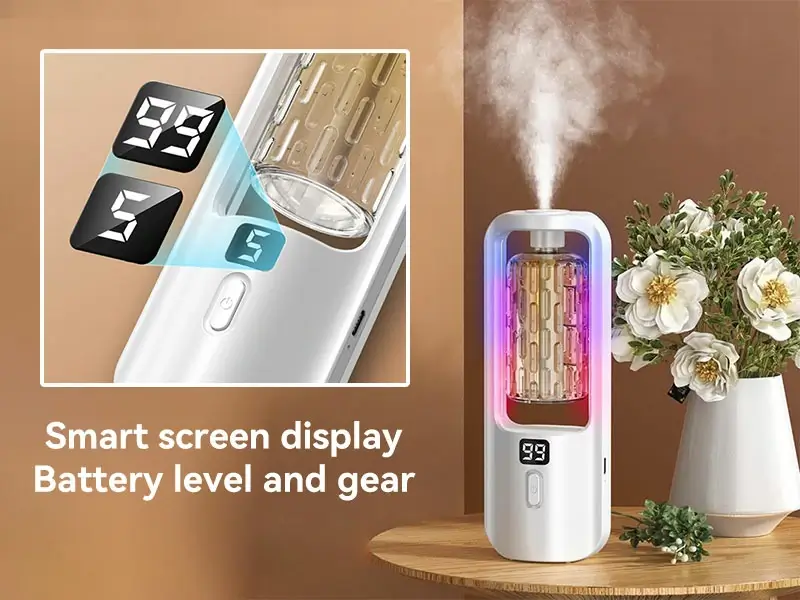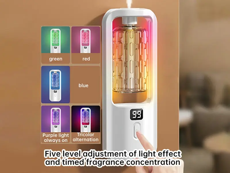 Five digital control levels with colorful led for personalized fragrance strength. Timed spray adds healing and romance to your space. |